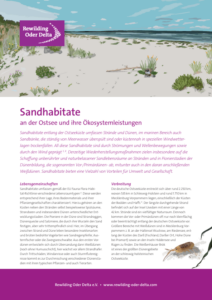 Welche Vorteile bringt die Wiederherstellung von Ökosystemen im Meer und an der Küste der deutschen Ostsee? Wir stellen den aktuellen Wissensstand zu Wiederherstellungsmaßnahmen von Ökosystemen in und an der deutschen Ostsee und den daraus resultierenden Ökosystemleistungen bereit. Damit möchten wir die Akzeptanz für die Umsetzung zukünftiger Maßnahmen auf gesellschaftlicher und politischer Ebene erhöhen. Hierfür führen wir unter anderem Workshops mit verschiedenen Interessensgruppen durch und veröffentlichen Informationsmaterial und Handlungsempfehlungen. Im Fokus stehen vier der bedeutendsten Ökosysteme der deutschen Ostsee und ihrer Küsten: Sandlebensräume, Salzgrasländer, Seegraswiesen und Riffe.